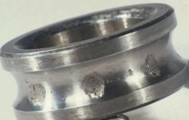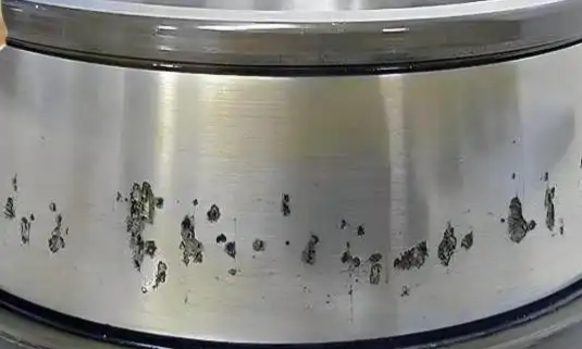 Identification Key Points: Evenly distributed small pits on the surface of raceways or steel balls, with large areas of metal peeling in severe cases; abnormal vibration and noise during bearing operation, which become increasingly obvious as damage worsens. It should be noted that this type of damage deteriorates gradually. If shutdown and handling are not conducted in a timely manner, surface damage marks may fade away, bringing difficulties to subsequent troubleshooting.