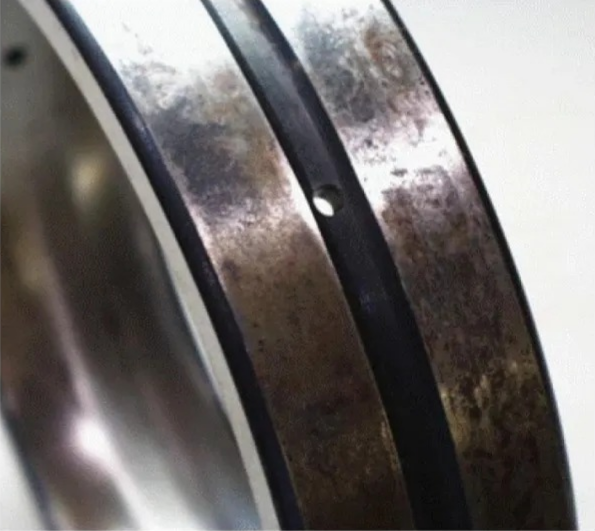 Identification Key Points: Noticeable discoloration on bearing surfaces, softening and adhesion of raceways and steel balls; rapid temperature rise during operation accompanied by burnt odor. Failure to shut down timely will result in direct bearing scrapping and potential shaft damage.